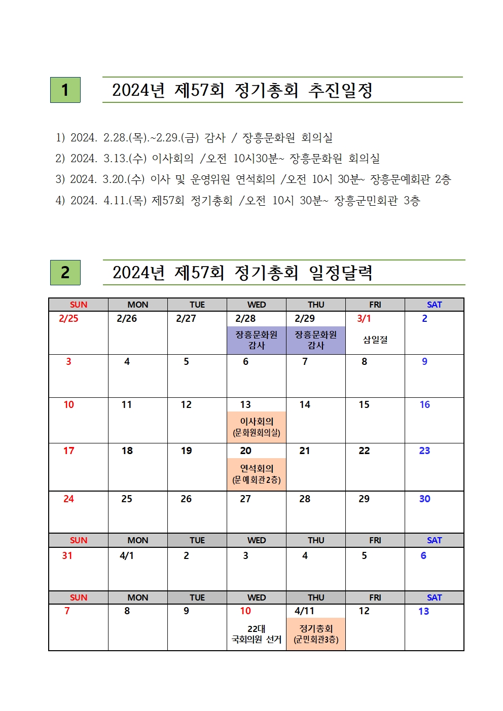 2024 제57회 정기총회 ( 定期總會) 추진 일정